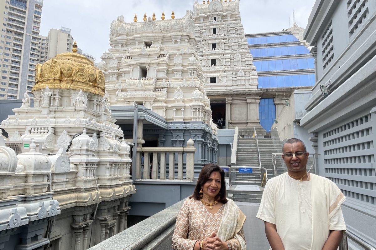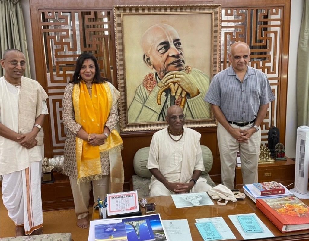 Smt Kiran Mazumdar Shaw Ji and Sri Dev Mazumdar Ji visited us today and had the darshan of Sri Radha Krishnachandra. They also met Sri Madhu Pandit Dasa and appreciated our services to society. We pray that the Lord showers His choicest blessings upon them.